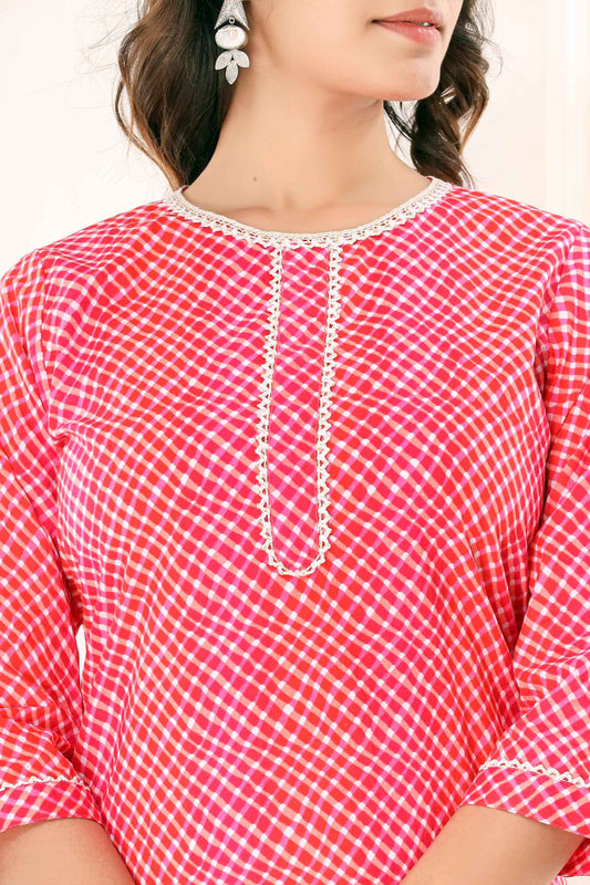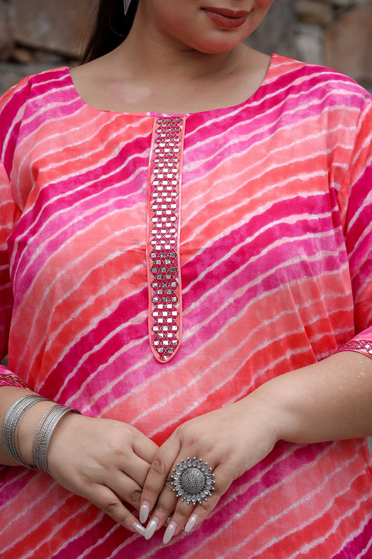 Pink Leheriya Straight Kurti