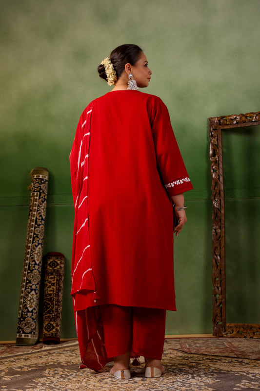 Aashna Maroon Embroidery Detailing Plus Size Suit Set