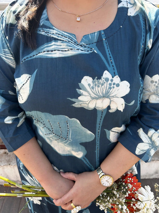 Aashi Blue Floral Plus Size Cotton Suit Set