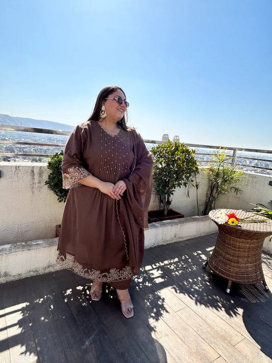 Alizeh Brown A-line Plus Size Suit Set