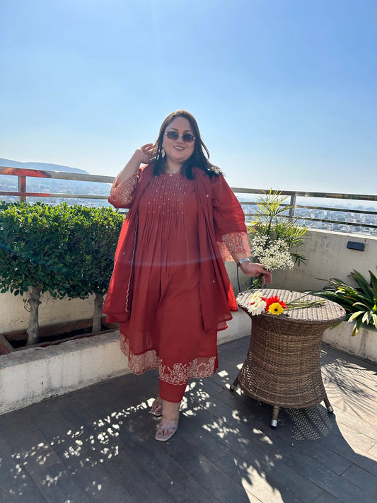 Alizeh Rust A-line Plus Size Suit Set