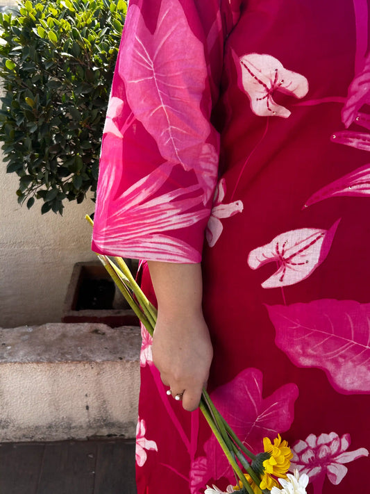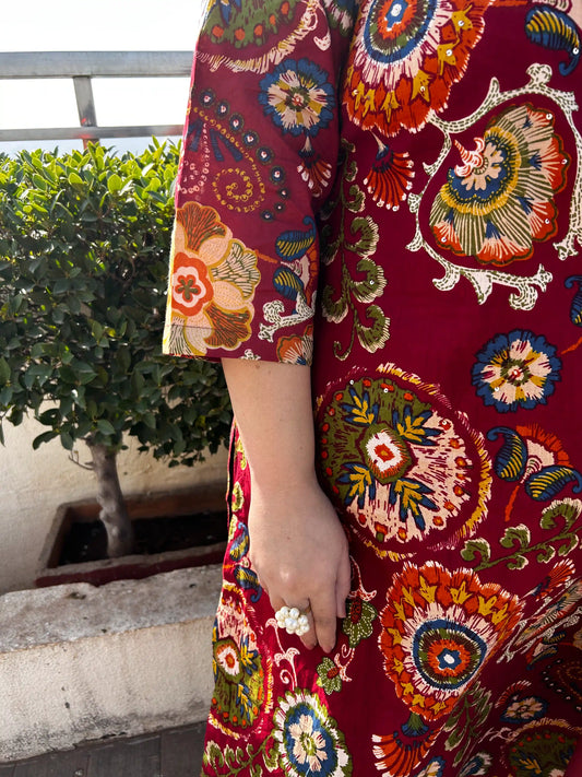 Maroon Handblock Plus Size Suit Set