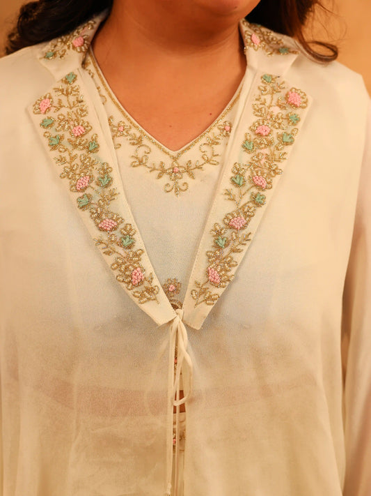 Vaani White Embroidered Plus Size Shrug Set with Skirt