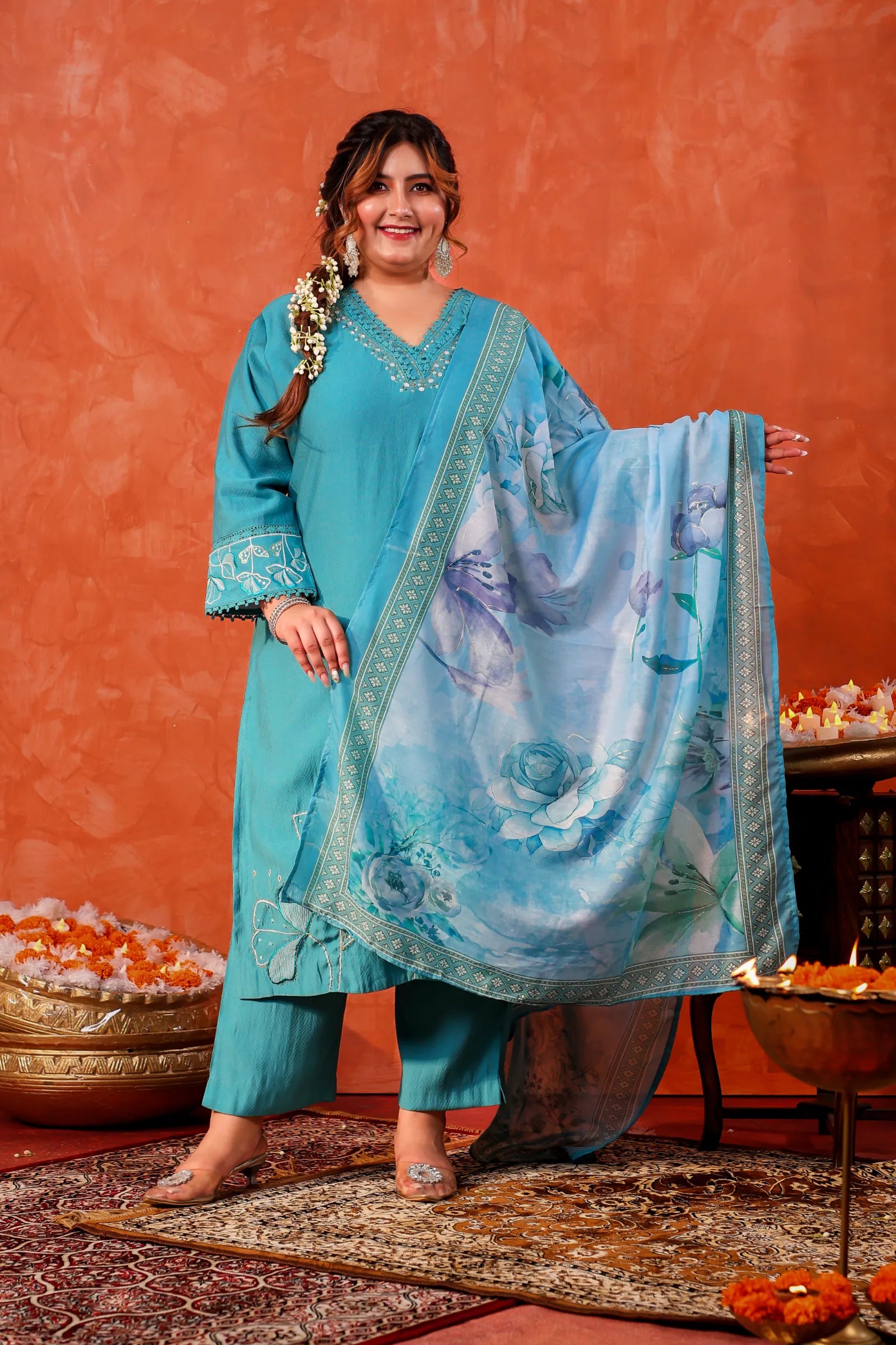 Aarohi Blue Plus Size Suit