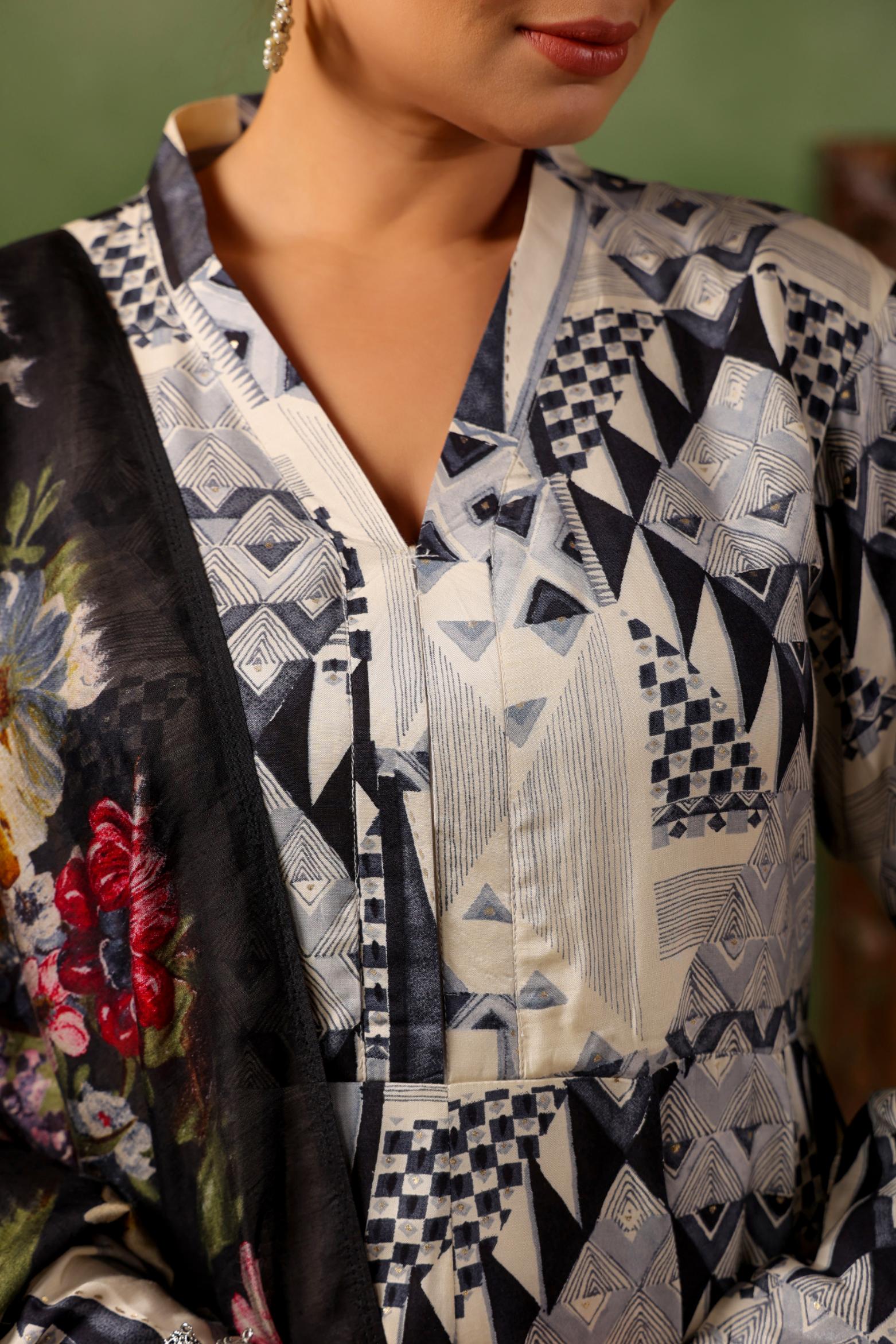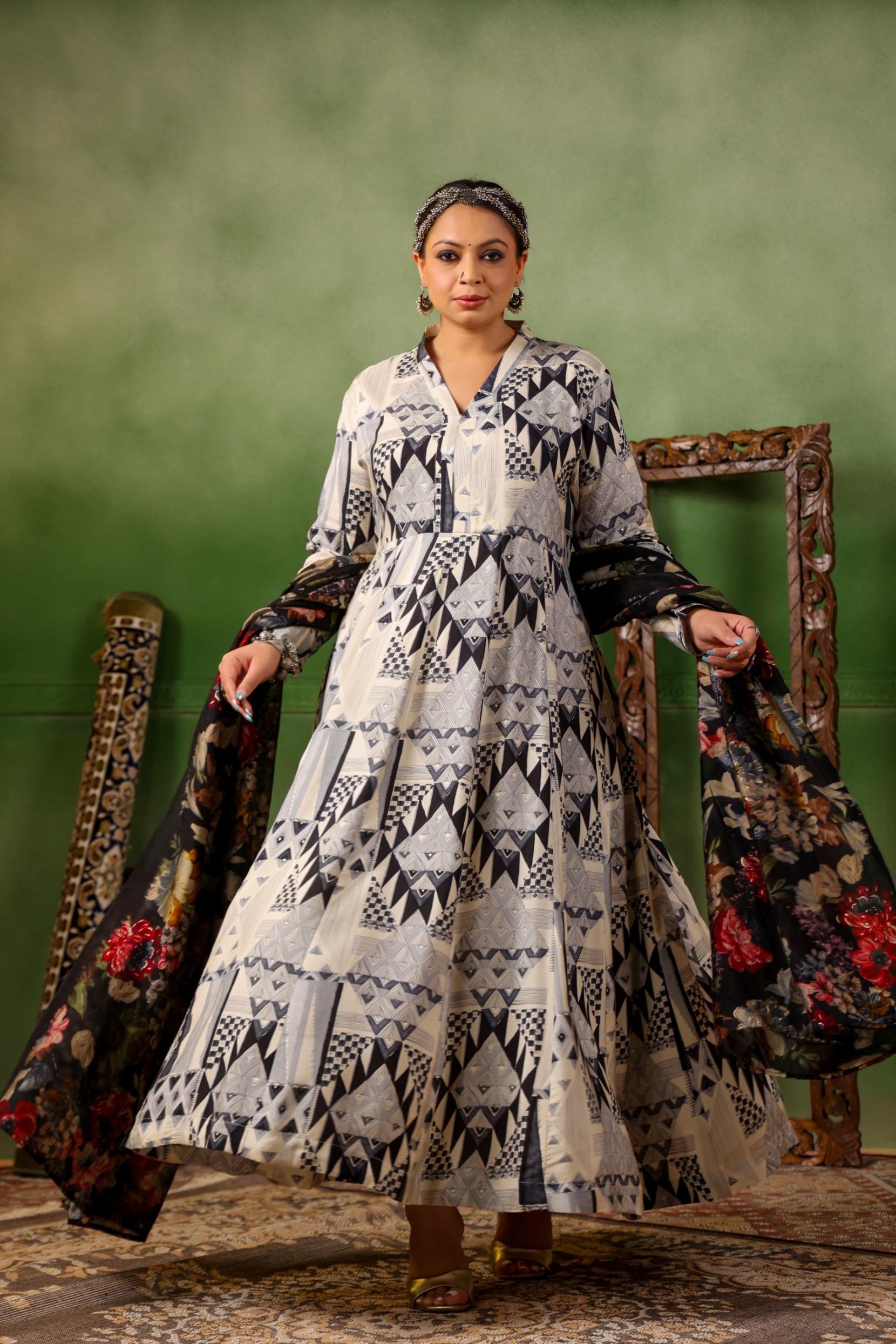 Aarzu Printed Plus Anarkali Dress with Dupatta