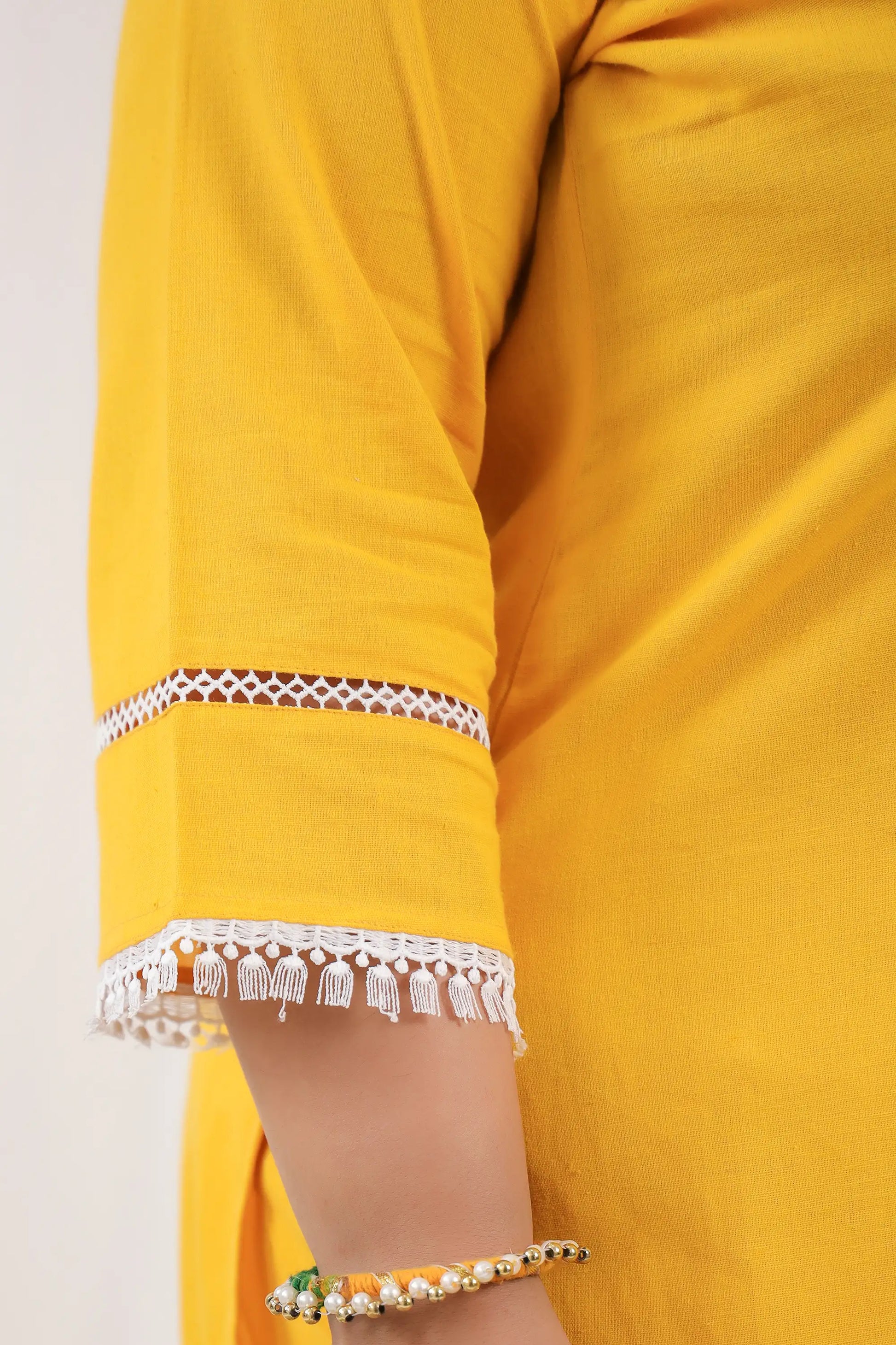 - Solid kurta with lace detailing