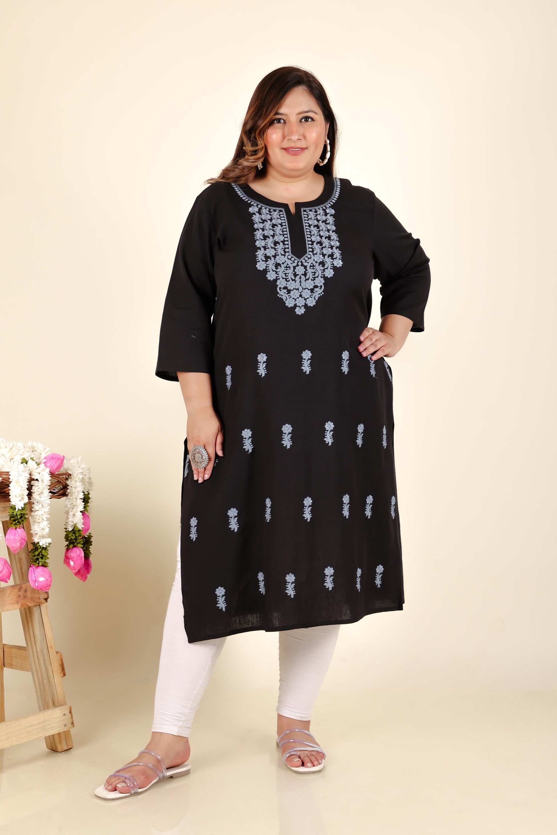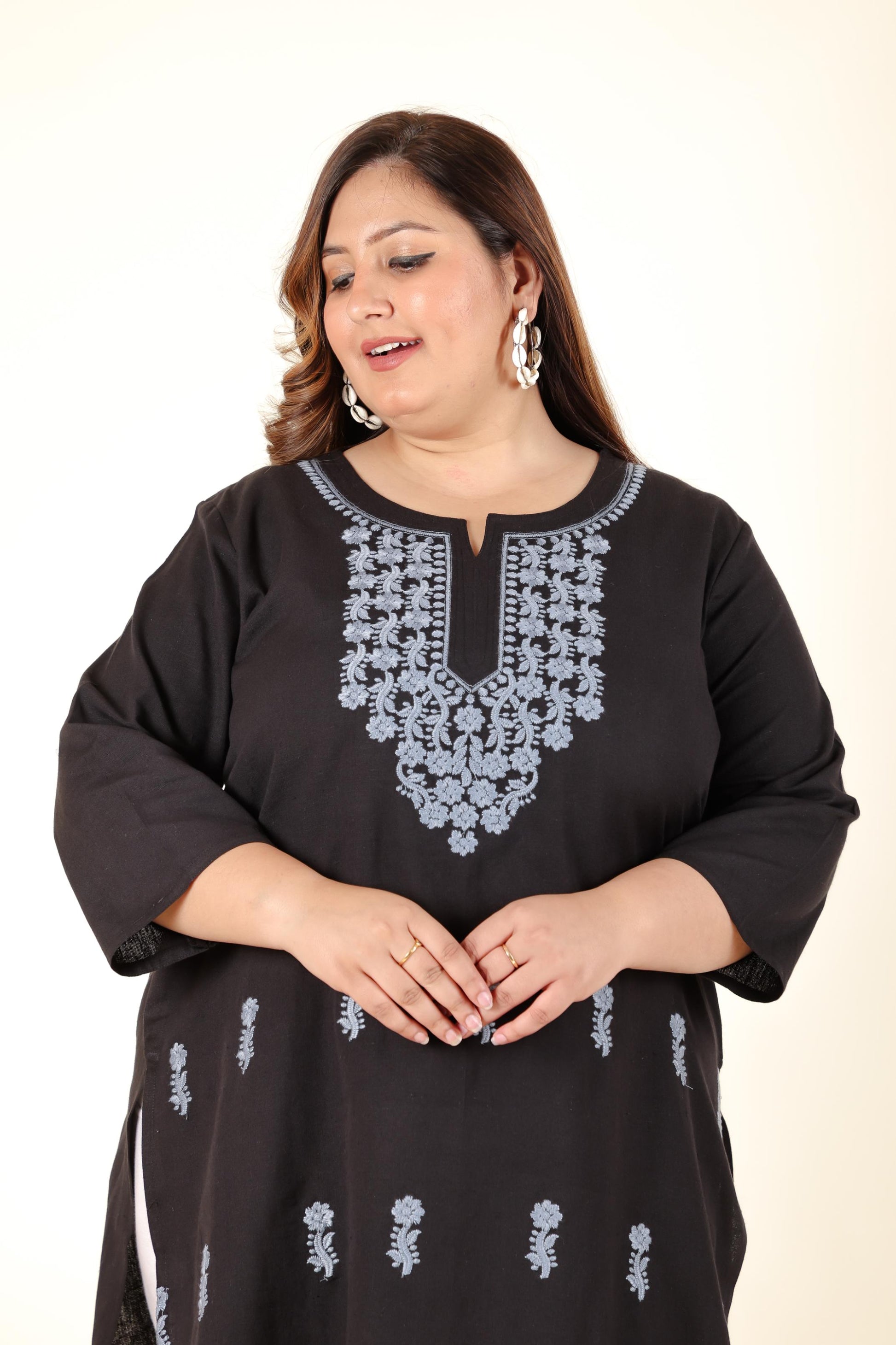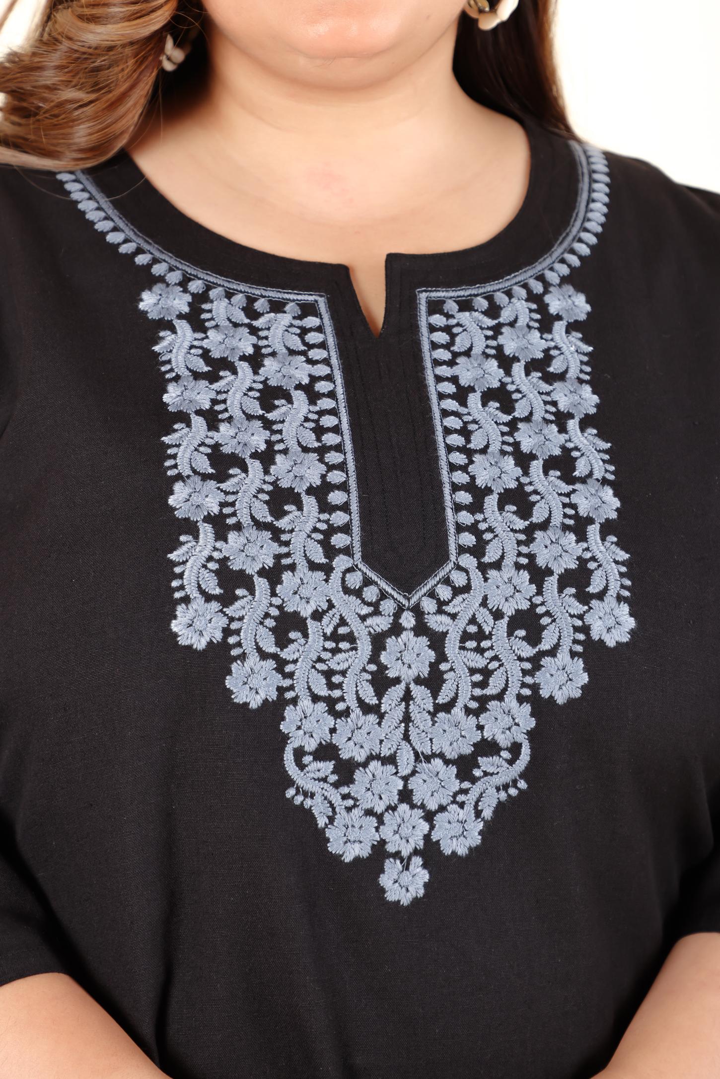 Black Embroidery Plus Cotton Kurti