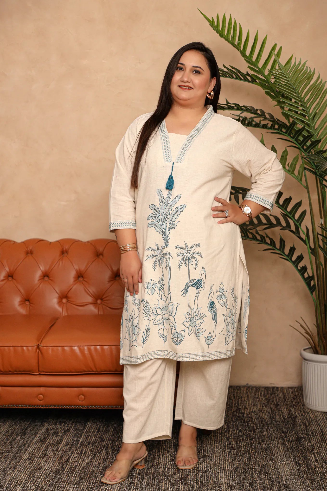 Seeta-Blue Palm Tree Plus Size Co-ord