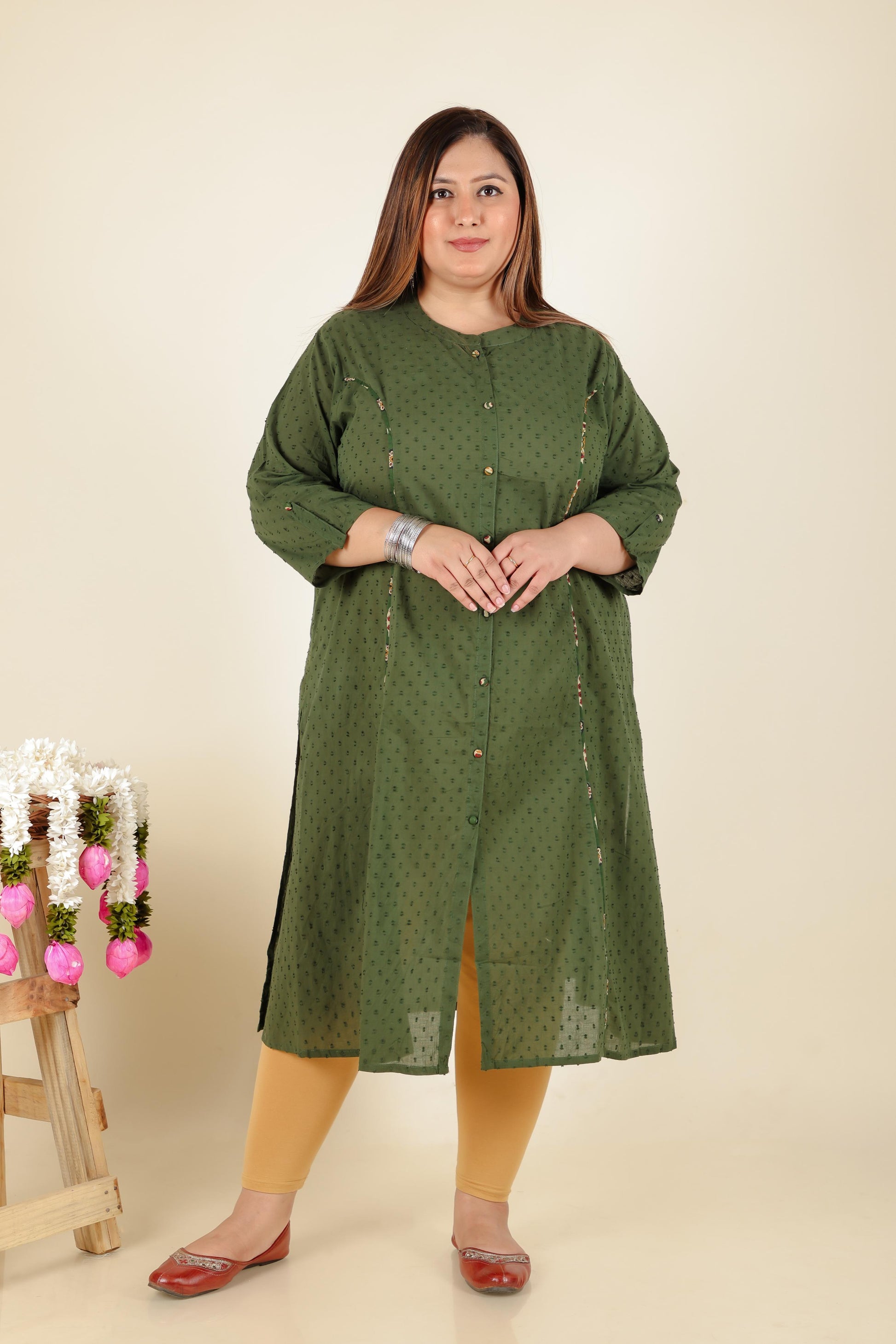 Green Schiffli Plus Size Cotton Kurti
