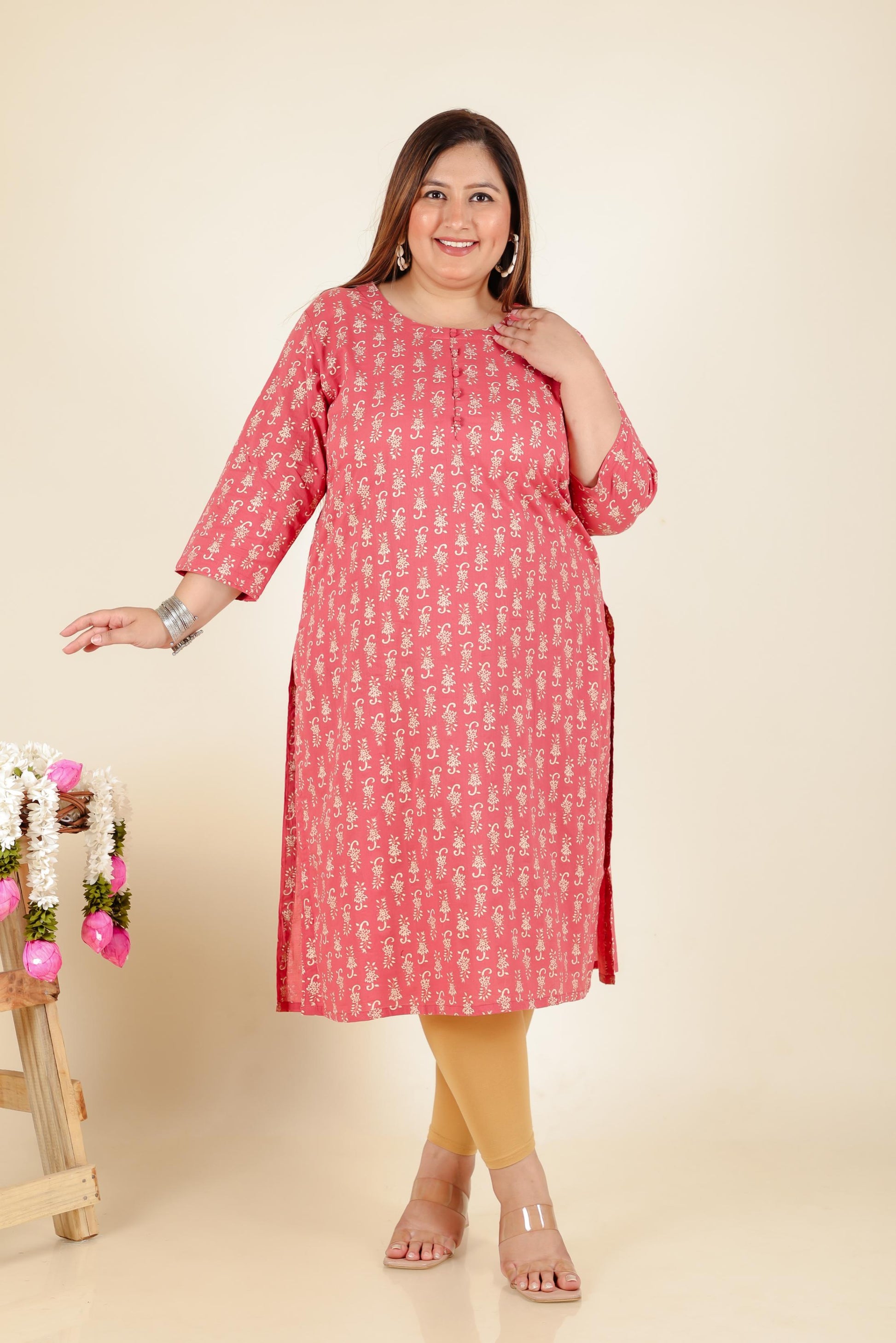 Hibiscus Gold Buti Plus Size Cotton Kurti