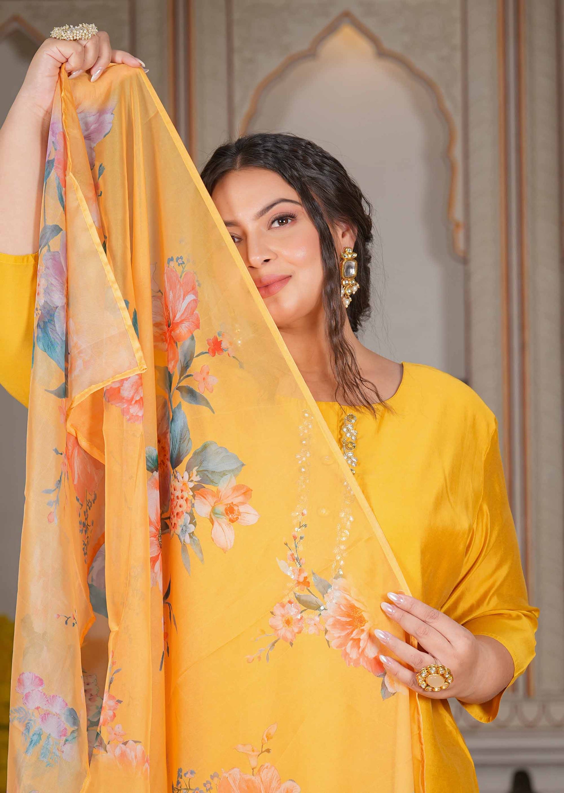 Ladoo Peela Organza Dupatta Plus Suit