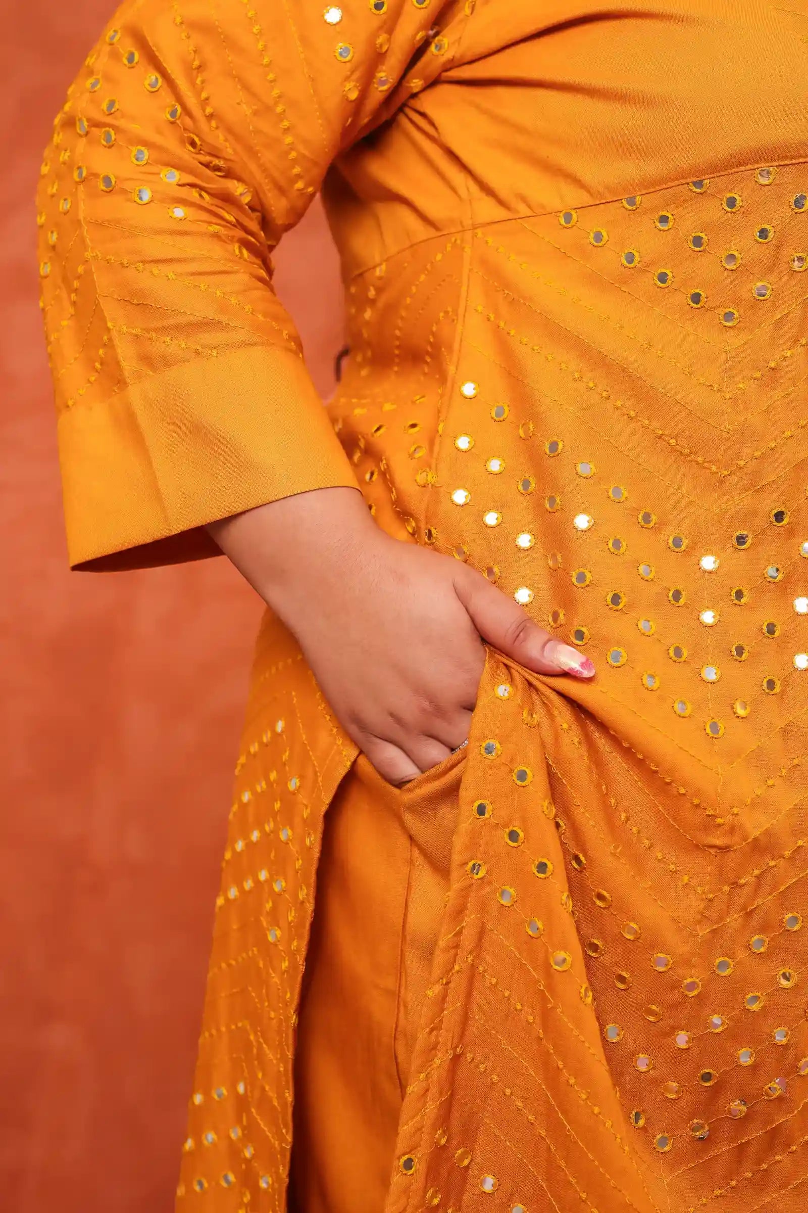 - Solid kurta with mirror work detailing